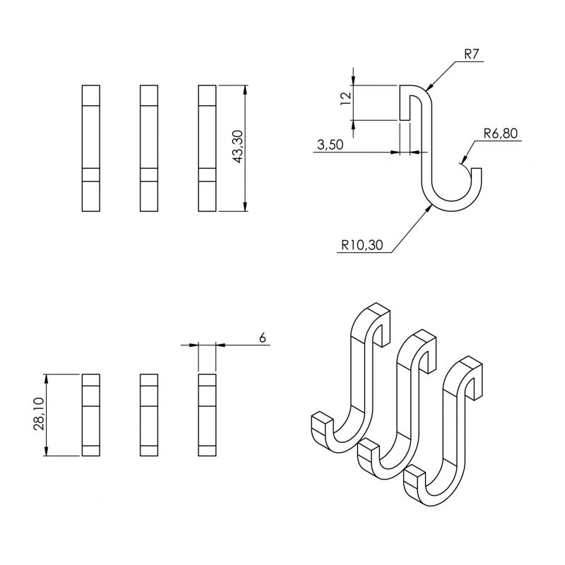 Kit de 3 crochets pour T1455- Finition noir mat Descriptif: Couleur: Noir mat Dimension: L.6mm H.43mm P.28mm Bon à savoir: Le kit se compose de 3 crochets Conseil d'entretien: Ne pas utiliser de produits abrasifs