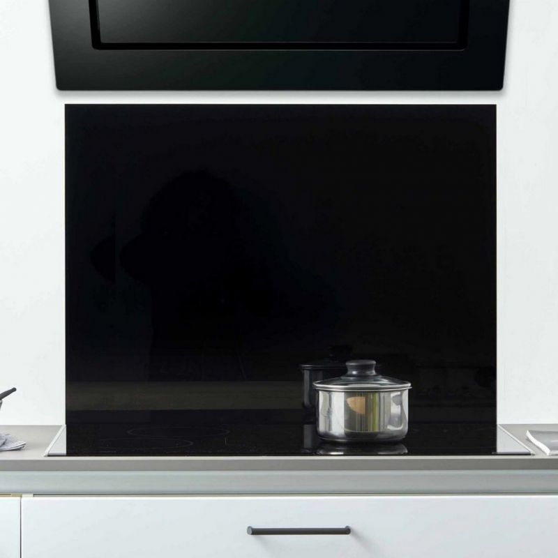 Crédence verre trempé 5mm-600x500mm - Extra-clair laqué noir - A coller
