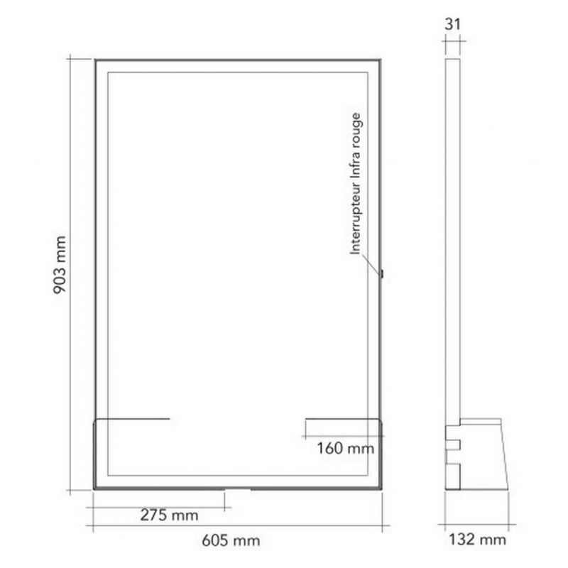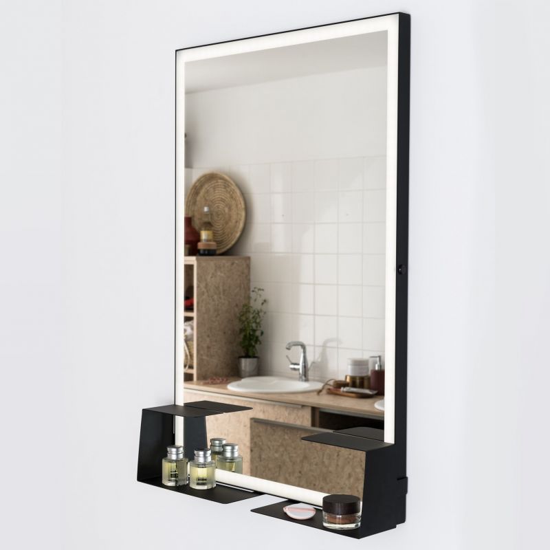 Miroir Led Noir Mat- 600x900mm- Avec étagères