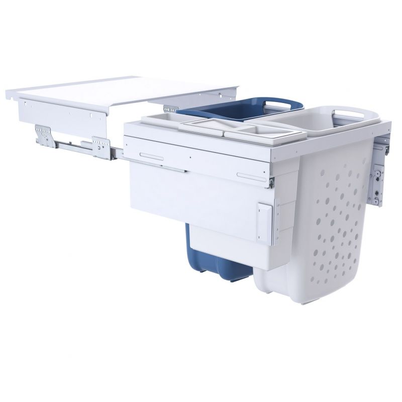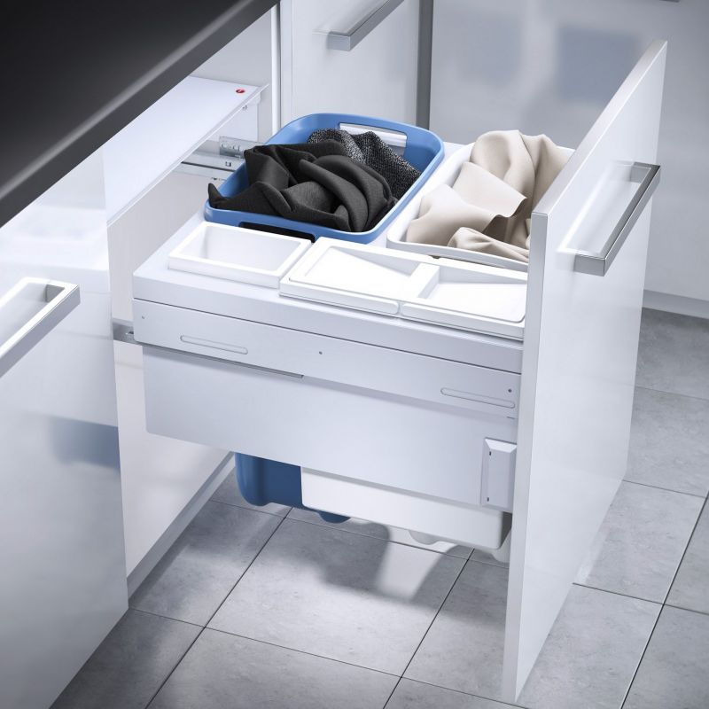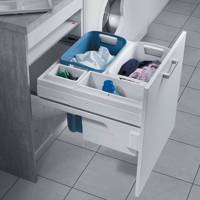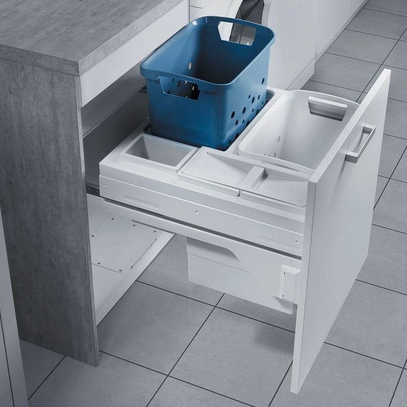 Paniers à linge coulissant-Finition blanc meuble de 600 mm-4 bacs plastiques (80,5L)