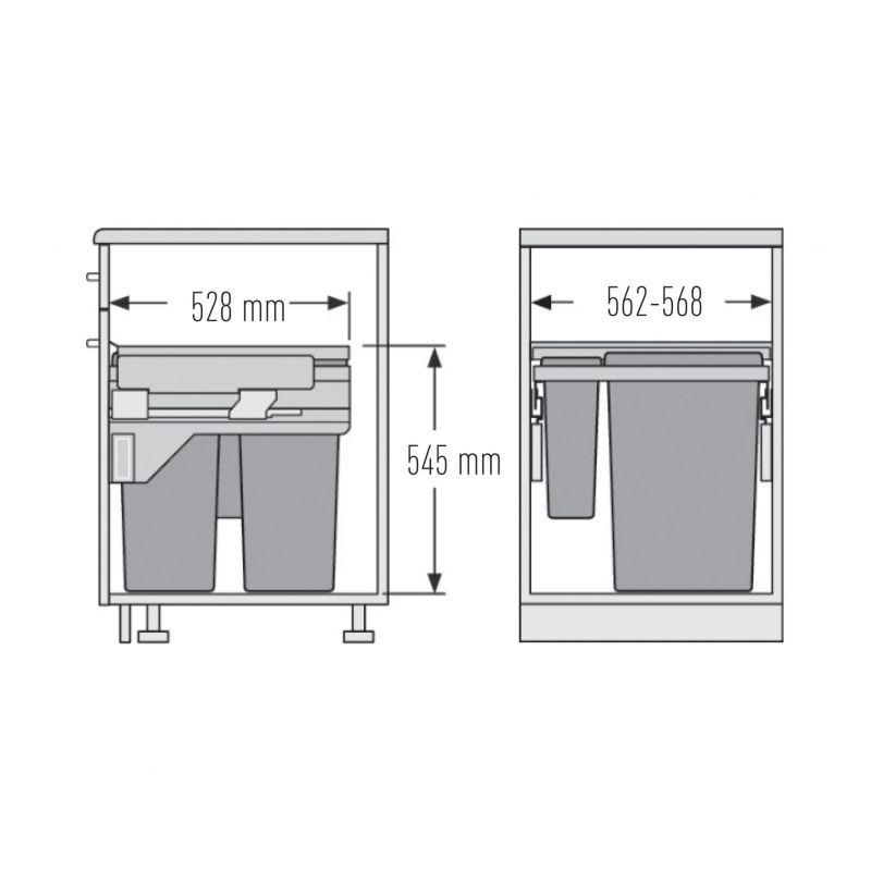 Dimensions : h. 545 x L. 528 mm x l. 562 à 568 mm