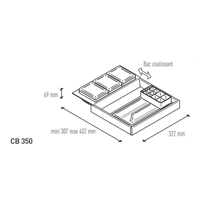 Dimensions : h. 69 x L. 307 à 402 x l. 322 mm