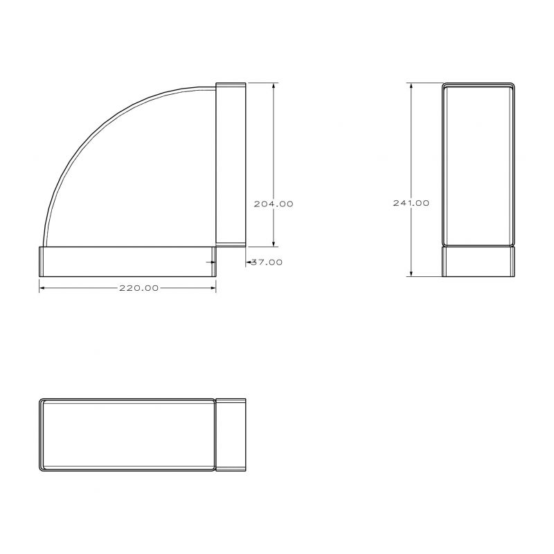 Raccord Horizontal à 90°-Pour conduit rectangulaire-Type 150 blanc (220*90mm extérieur)-Classement feu M1 Système d'évacuation d'air rectangulaire - Raccord horizontal à 90° Descriptif : Couleur : Blanc Dimensions : 220 x 90 mm Type : 150 Classement feu M1 Bon à savoir : Pour conduit rectangulaire. Conseil d'entretien : Ne pas utiliser de produit abrasif.