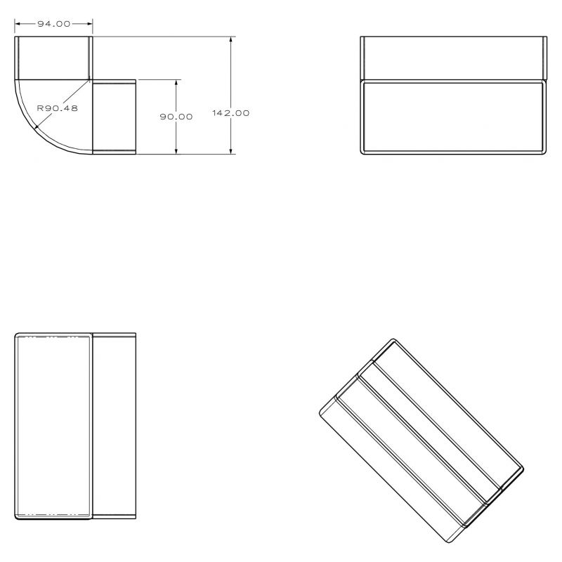 Raccord vertical 90° - Pour rectangulaire - Type 125 blanc (204*60mm)