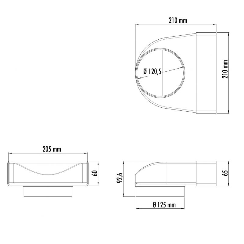 Raccord mixte rectangulaire/rond pour système d'évacuation - Type 125 blanc (204x60mm intérieur)