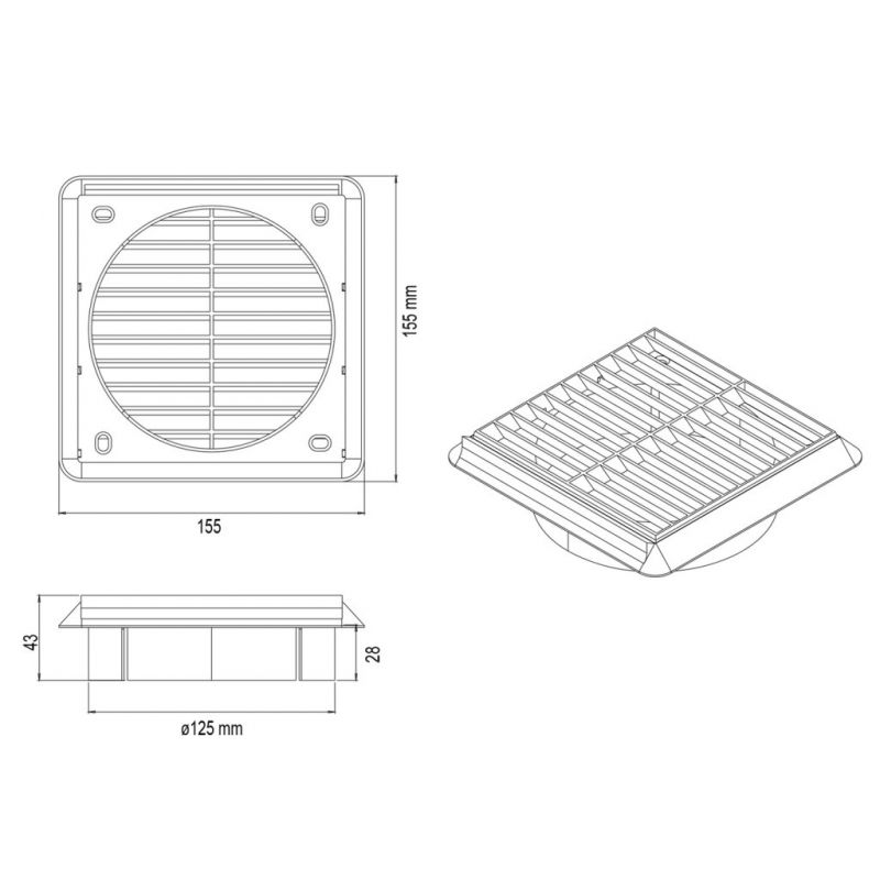 Bouche d'évacuation murale - Type 125 beige - 200x200mm