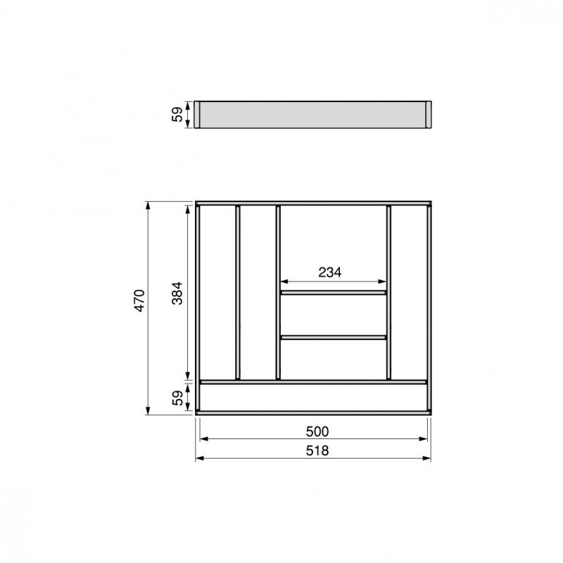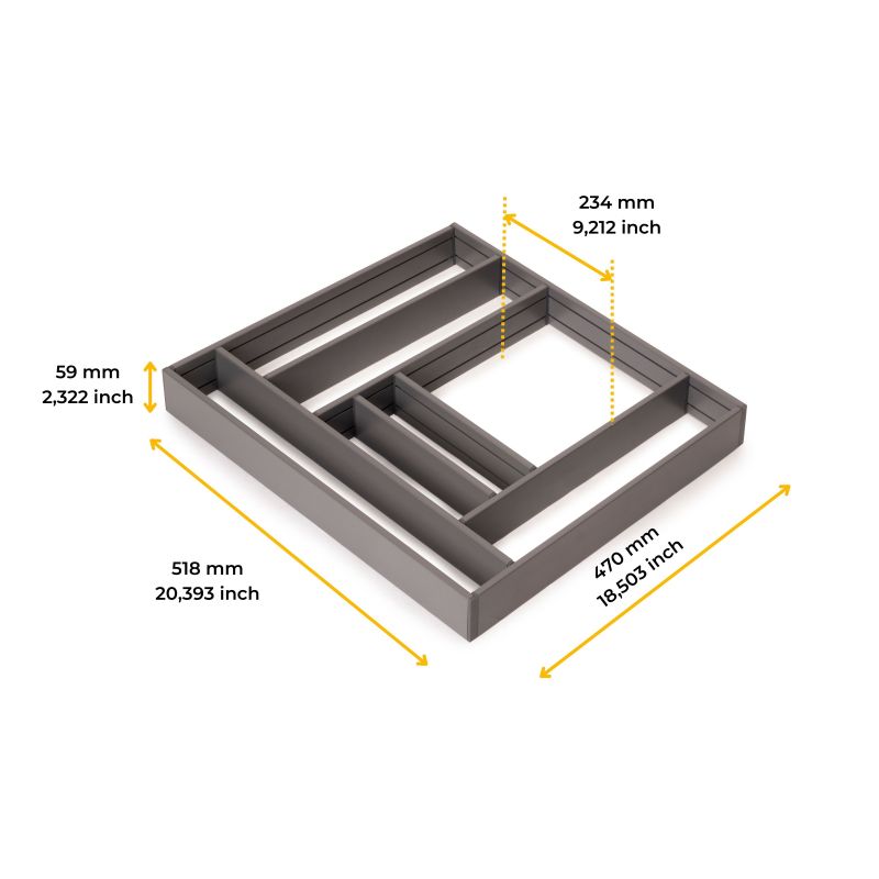 Organisateur de tiroirs Alumount 600x500mm, Gris anthracite