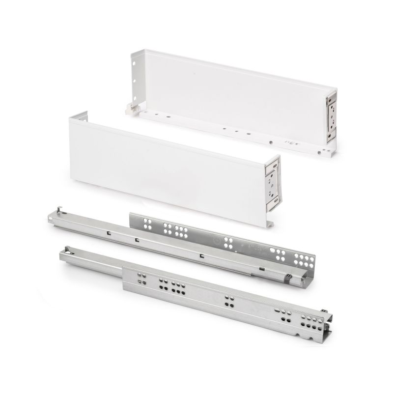 Le tiroir Simplex avec côtés métalliques est la solution la plus simple et la plus polyvalente pour disposer d'un tiroir à côtés métalliques dans des meubles de cuisine, salle de bain ou les autres pièces de la maison, sans avoir besoin de réaliser un usinage spécial.