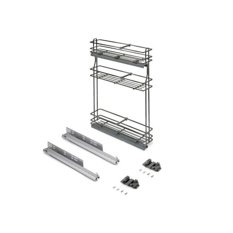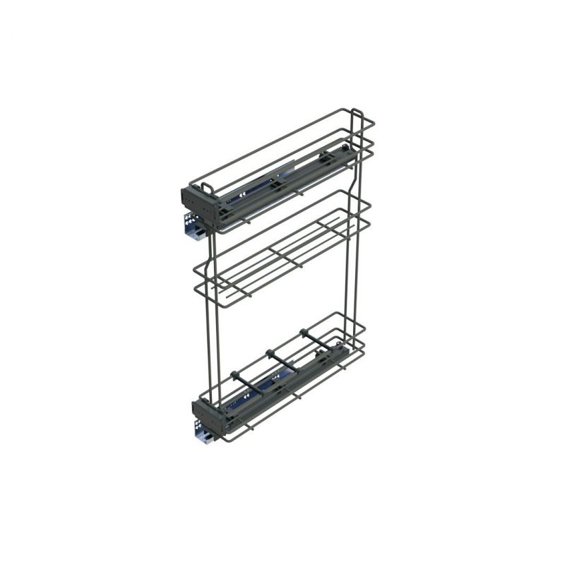Porte-bouteilles 3 plateaux coulissant TitaneMax avec amortisseur, fixation à gauche pour caisson de 150mm, Gris Anthracite