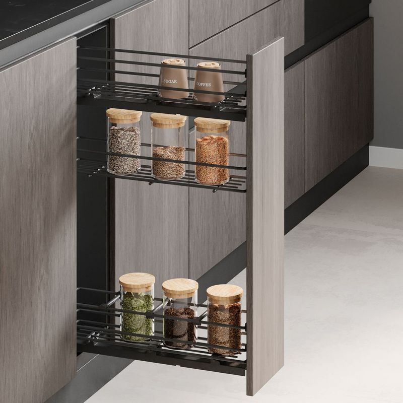 Conçu pour des meubles de 800 mm de hauteur, le porte-bouteilles coulissant TitaneMax est la solution idéale pour optimiser le rangement dans les meubles bas de cuisine, en particulier dans les espaces réduits. Conçu pour organiser les bouteilles de manière efficace, ce modèle permet de tirer le meilleur parti des espaces auxiliaires des meubles de cuisine. Grâce à son design extractible, il offre un accès facile et confortable au contenu de ses paniers, ce qui en fait une option idéale pour maintenir l'ordre dans la cuisine.