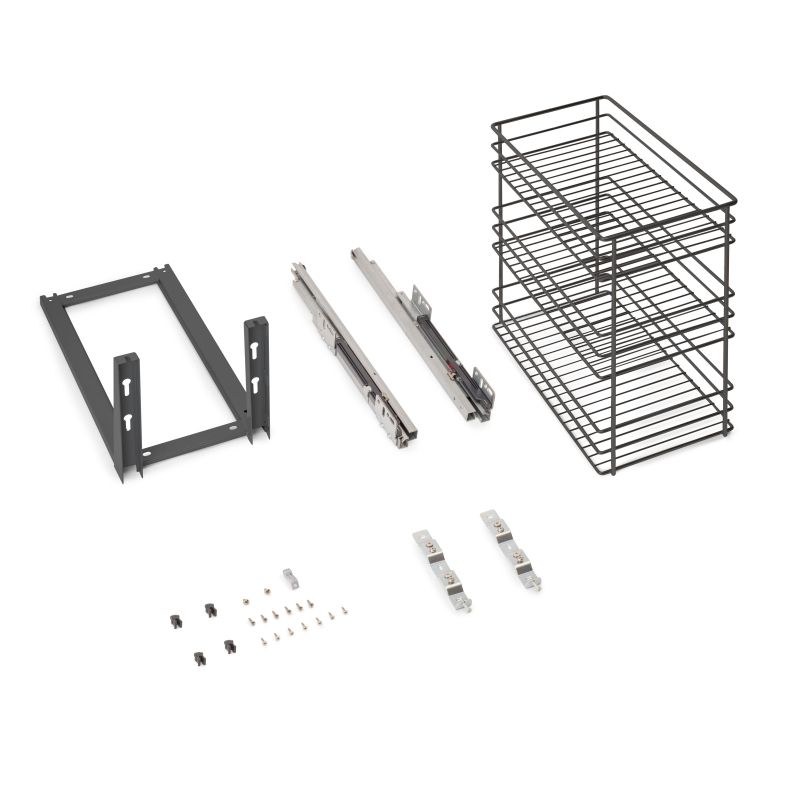 Le chariot coulissant Titane est la solution idéale pour optimiser l'espace et améliorer la fonctionnalité des meubles bas de cuisine. Grâce à son design innovant, il permet une installation simple et rapide, offrant un accès total au contenu de votre meuble. Ses trois grands paniers sont conçus pour optimiser l'espace disponible, en aidant à maintenir l'ordre et à l'organiser facilement l'intérieur de votre meuble.