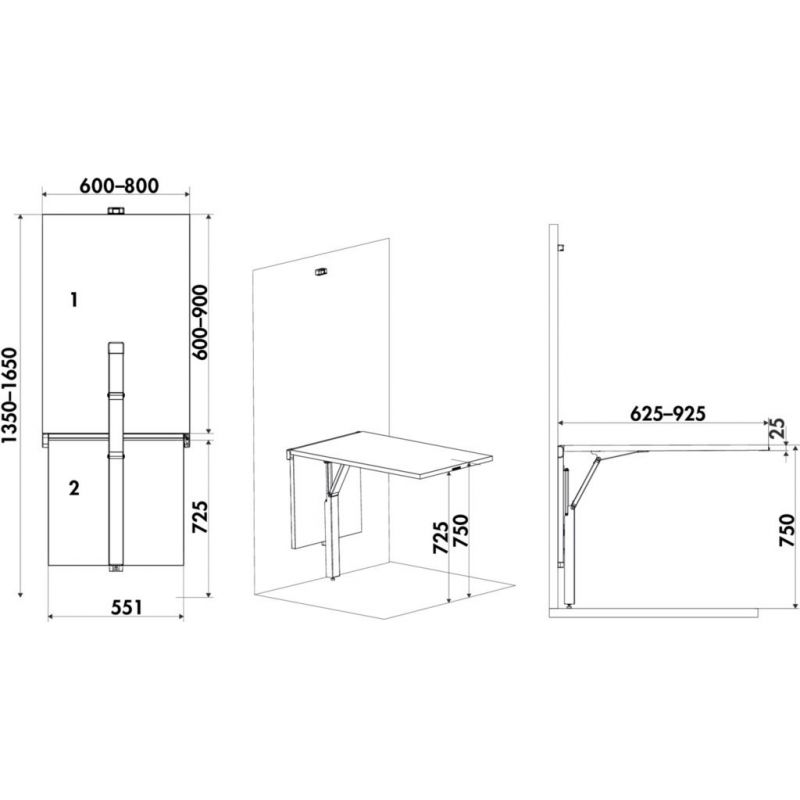Ferrure pour table rabattable. Sans plateaux. Pour des largeurs de plateaux de 600 à 800 mm. noir mat capacité de charge de max. 30 kg pour des épaisseurs de plateaux de 25 mm