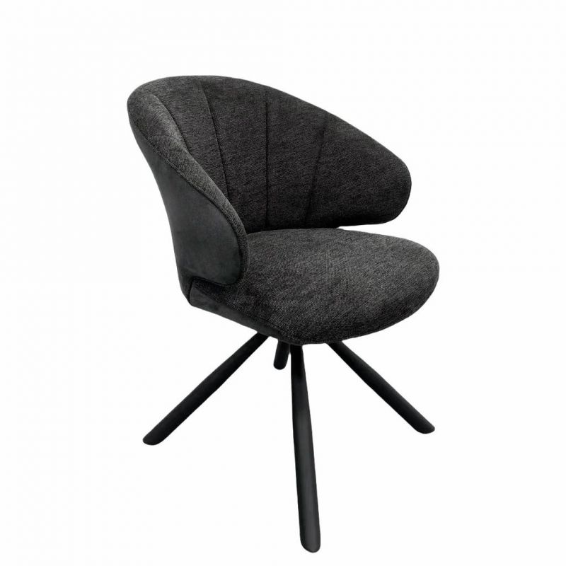 Brezo 1AS, Chaise, châssis noir mat, rotatif, rond, housse gris foncé