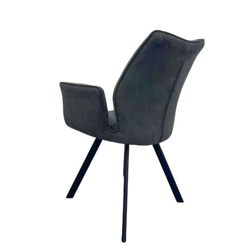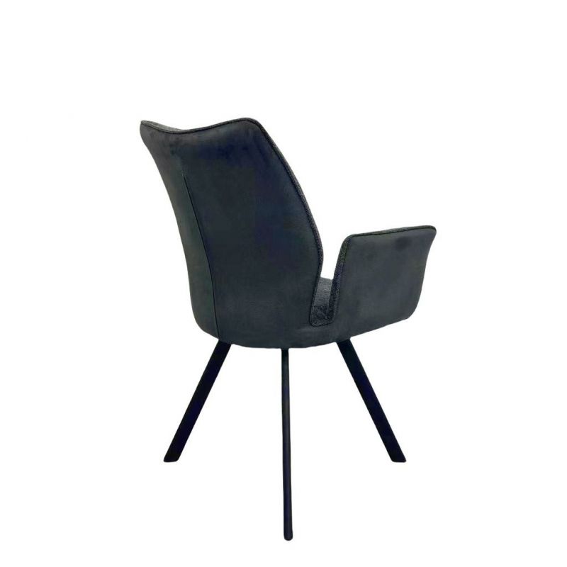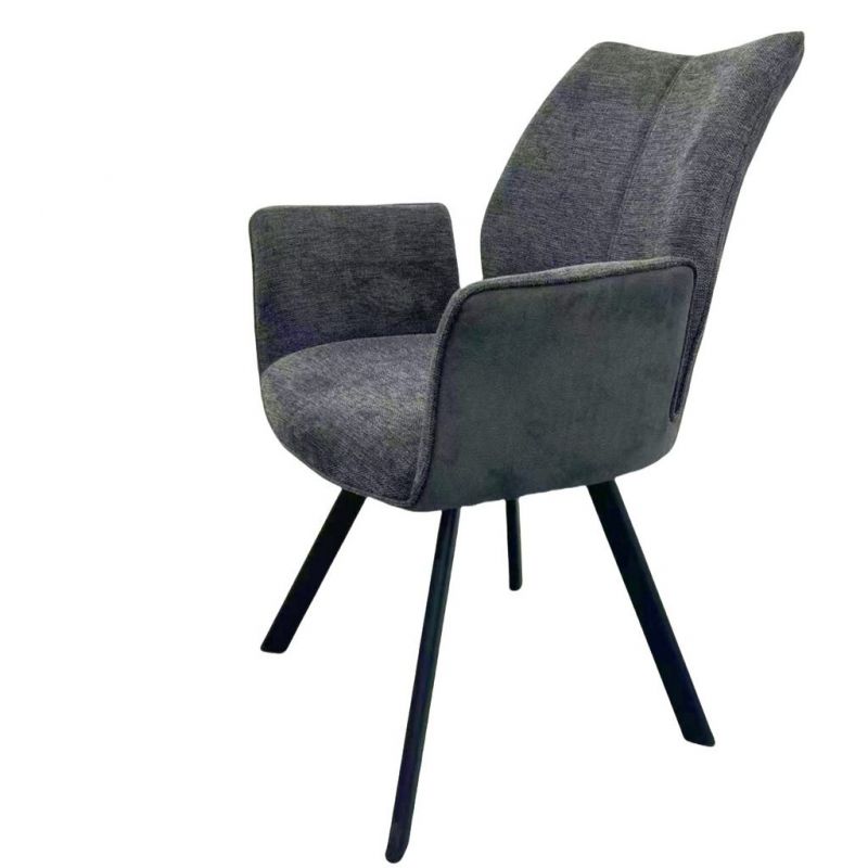 Chaise avec accoudoirs. avant: siège et dossier tissu (100 % PES, 011) rembourré avec noyau à ressorts ensachés (RG 28) dossier fermé: similicuir gris foncé résistance à l'abrasion 30.000 dossier fermé résistant à jusqu'à env. 150 kg rigide ou 360° rotatif (retourne automatiquement à sa position initiale) hauteur jusquau bord supérieur des accoudoirs 65 cm largeur, accoudoirs compris 60 cm hauteur totale 87 cm profondeur d'assise 45 cm largeur d'assise 46 cm hauteur d'assise 47 cm avec patins de sol en plastique livraison démontée
