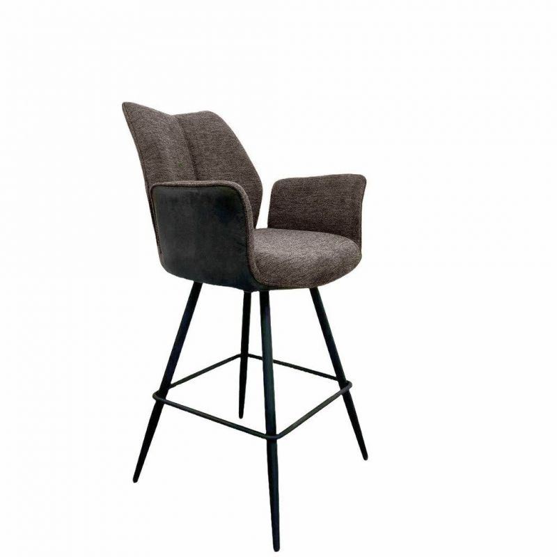 Tabouret avec accoudoirs. avant: siège et dossier tissu (100 % PES, 011) rembourré avec noyau à ressorts ensachés (RG 28) dossier fermé similicuir gris foncé résistance à l'abrasion 30.000 dossier fermé résistant à jusqu'à env. 140 kg rigide ou 180° rotatif (retourne automatiquement à sa position initiale) hauteur jusquau bord supérieur des accoudoirs 83 cm largeur, accoudoirs compris 58 cm hauteur totale 99 cm profondeur d'assise 42 cm largeur d'assise 43 cm hauteur d'assise 68 cm avec patins de sol en plastique livraison démontée
