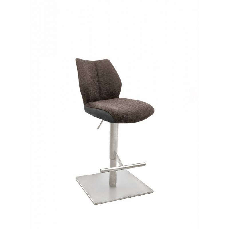 Stella S, Tabouret, châssis couleur acier inox, angulaire, housse marron