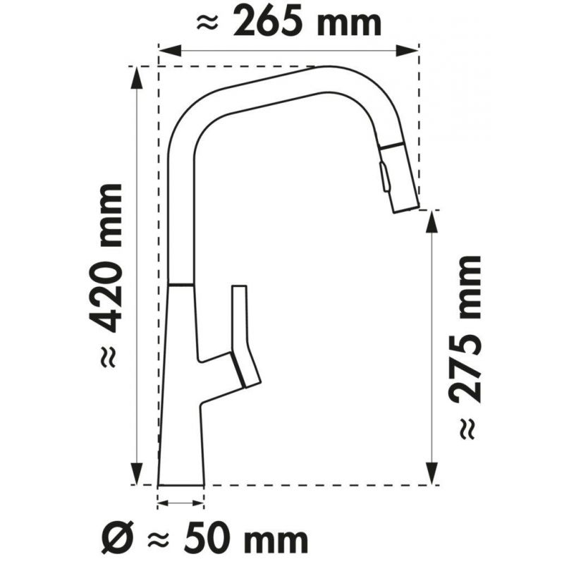 Mitigeur à bec unique. À tête pivotante/extractible (jet/douchette réglable), manette latérale, cartouche céramique.