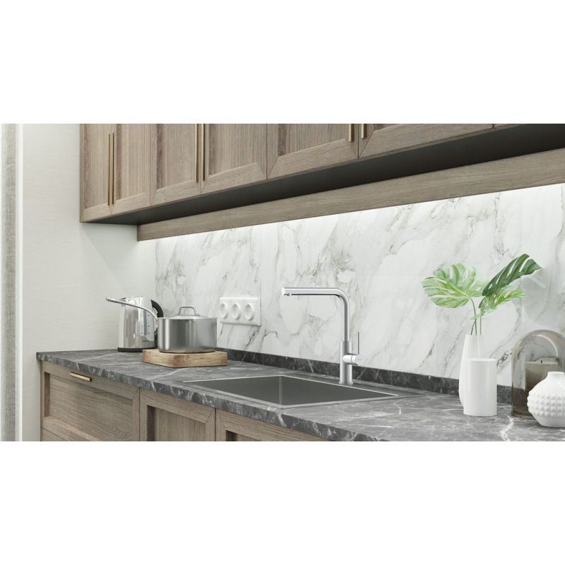Le robinet d'évier ARMATE® Namor 3 de Servizio apporte une touche de raffinement et convainc par sa fonctionnalité dans un style moderne. Parmi les caractéristiques de design marquantes, on trouve le bec en forme de L avec son arrondi doux. Le mitigeur est fabriqué en acier inoxydable de haute qualité. Ce matériau se caractérise par des surfaces robustes et des propriétés durables. Pour une manipulation optimale, le bec est orientable jusqu'à 120°. La commande du robinet se fait par le biais du levier latéral au design élancé. Un jet laminaire intégré empêche les tourbillons d'air, de sorte qu'un jet d'eau cristallin s'écoule avec un faible niveau sonore. La cartouche céramique associée permet un réglage précis de la température de l'eau. Il en résulte des conditions idéales, par exemple pour le prélavage de la vaisselle ou le lavage des fruits et légumes. D'un point de vue esthétique, la robinetterie haute pression est disponible avec différentes finitions de surface.