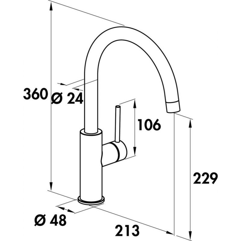 Mitigeur à bec unique. À tête pivotante, manette latérale et cartouche céramique.