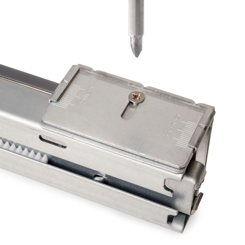 Il est conçu pour s'adapter à différentes largeurs d'armoires, grâce à un ajustement de 13 mm dans chacune de ses glissières et à ses entretoises incluses. Cela permet de s'intégrer dans des largeurs de caissons allant de 562 à 1120 mm et une profondeur maximale de 460 mm, assurant ainsi un réglage précis et polyvalent.