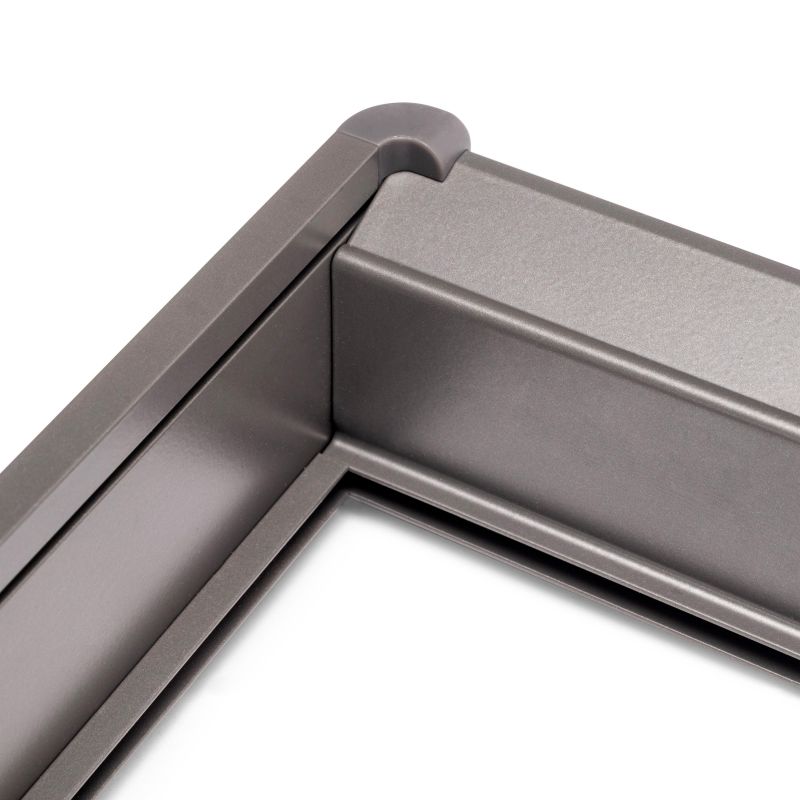 Le kit comprend tout ce dont vous avez besoin pour une installation rapide et soignée : 1 cadre, 1 jeu de coulisses, 1 jeu d'entretoises, 1 jeu d'enjoliveurs, 8 vis (Ø3,5x30 mm) et 4 vis (Ø4,5x20 mm), le tout dans un emballage soigné.