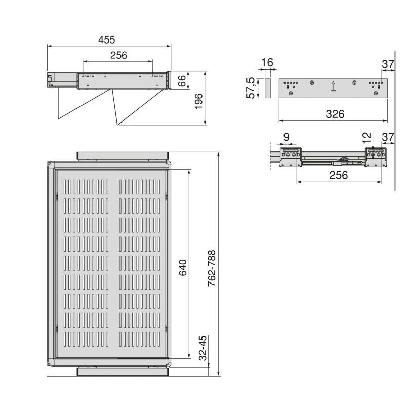 Il est disponible pour des meubles de largeur 600, 700, 800 et 900 mm, avec un réglage jusqu'à 13 mm sur chacune de ses coulisses grâce aux entretoises fournies, ce qui assure un ajustement précis à la largeur intérieure de votre armoire. Son montage est rapide et facile, sans besoin d'outils supplémentaires, il suffit de le visser sur les côtés de l'armoire.