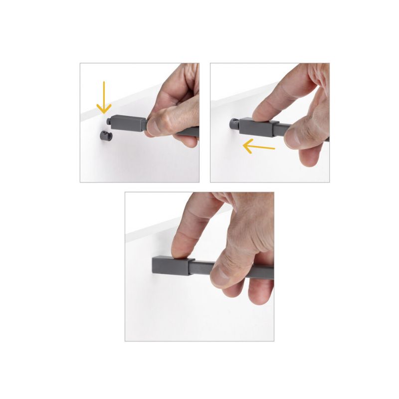 Ils permettent de régler l'inclinaison de la façade du tiroir. En outre, ils peuvent être montés sur des tiroirs dont l'épaisseur de l'arrière est différente, allant de 12 mm à 19 mm.