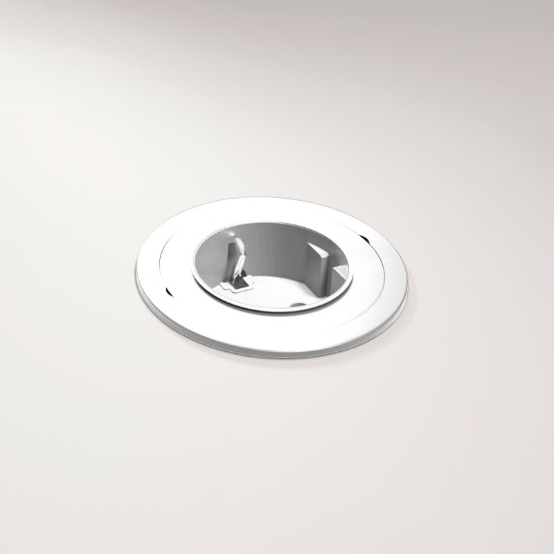 Bloc 1 prise encastrable. À monter dans le plan de travail, le bandeau frontal ou la paroi latérale.