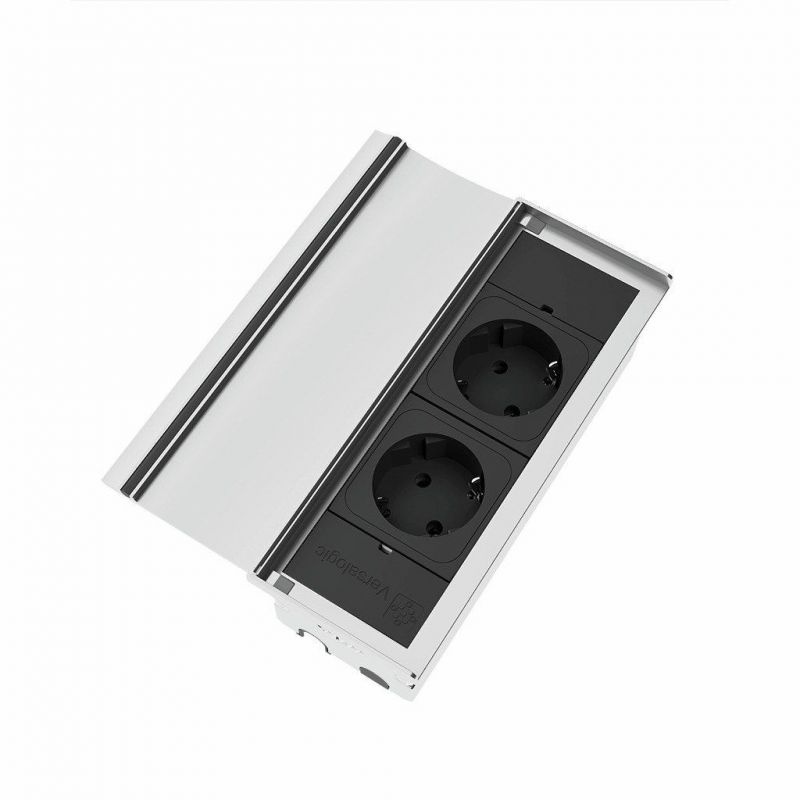 Bloc 2 prises Schuko VersaLid avec couvercle blanc mat