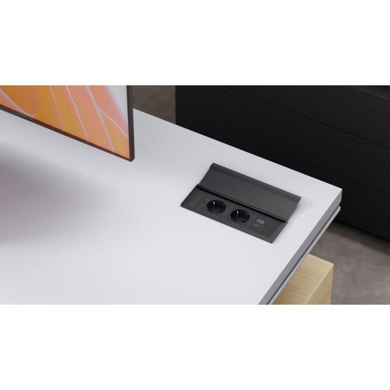 Bloc 2 prises encastrable avec couvercle, à monter sur un plan de travail, un bandeau frontal ou une paroi latérale.