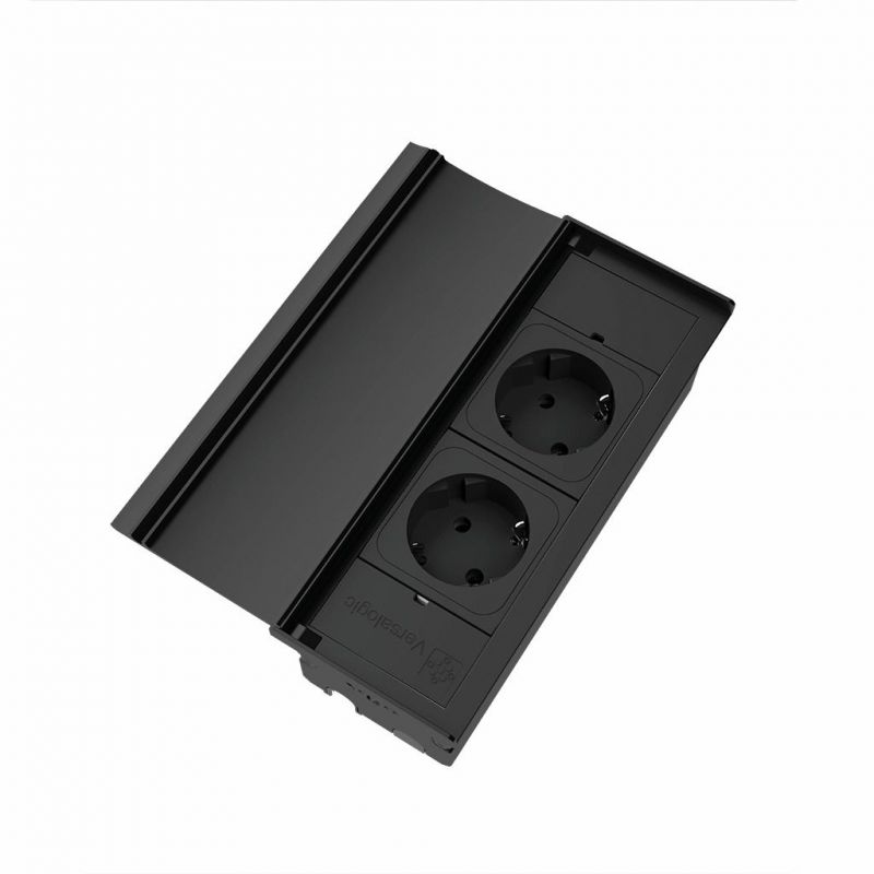 Bloc 2 prises Schuko VersaLid avec couvercle noir mat