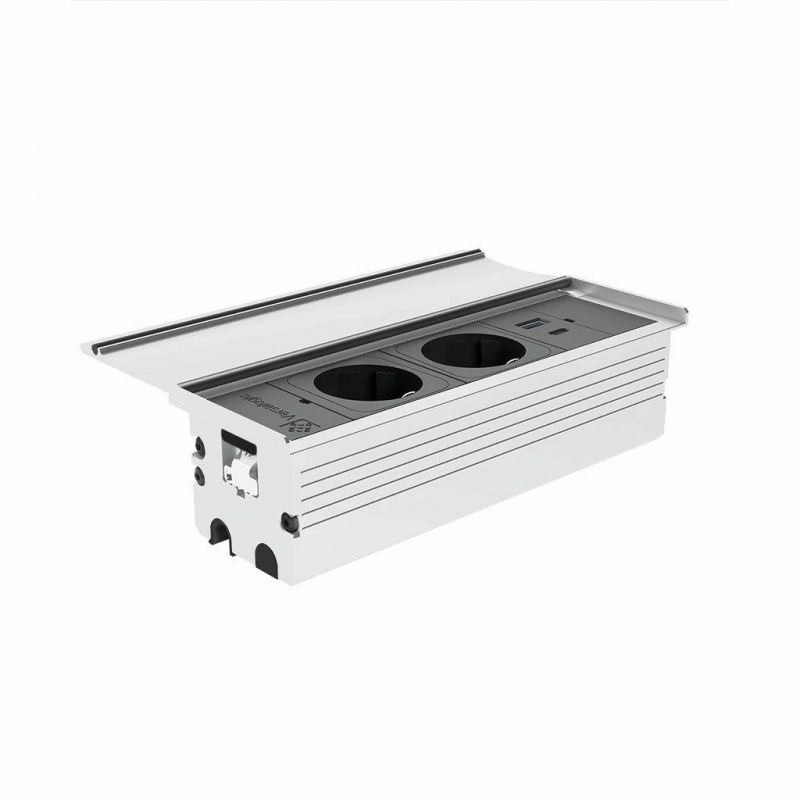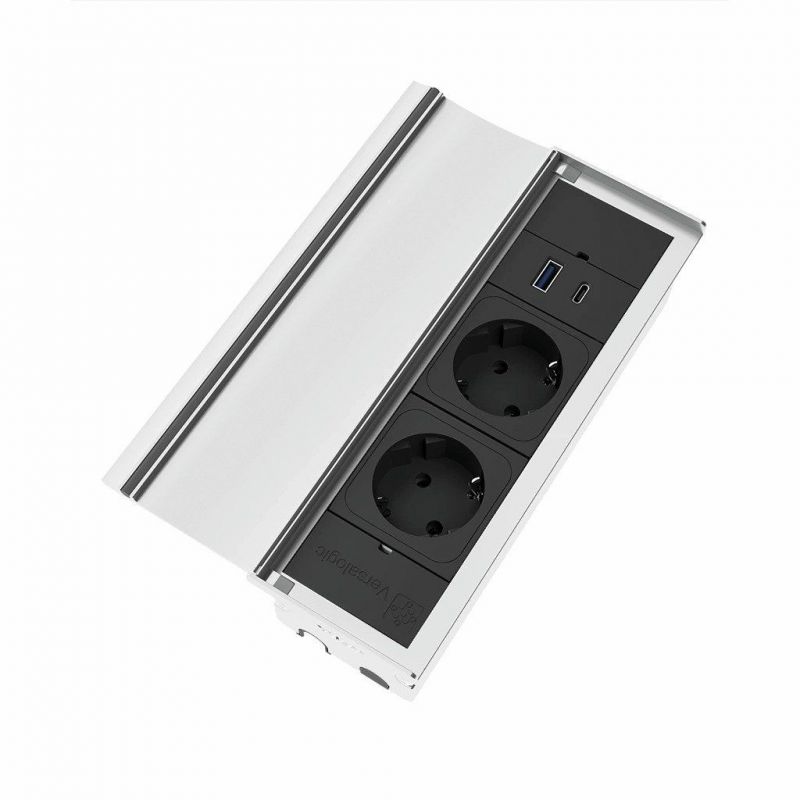 Bloc 2 prises Schuko + 1 USB-A + 1 USB-C VersaLid USB A/C avec couvercle blanc mat