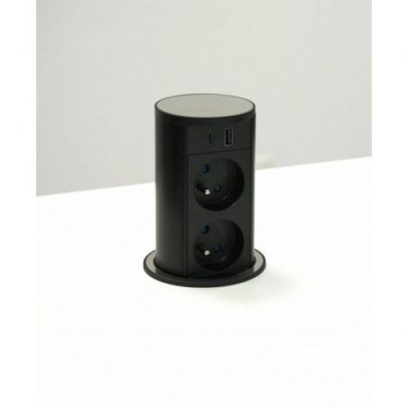 Élément pour prise. Escamotable. Avec 2 prises et un chargeur USB A/C pour armoires suspendues ou plans de travail.
