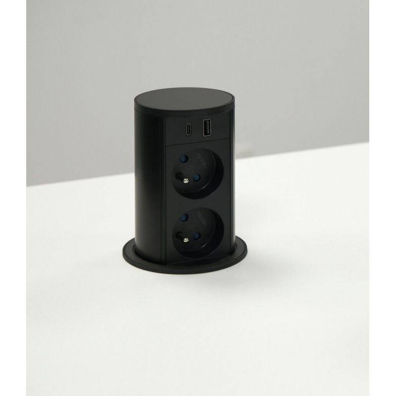 Bloc 2 prises + 1 USB-A + 1 USB-C VersaLift USB A/C, Gunmetal