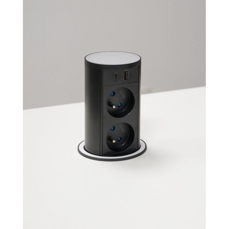 Bloc 2 prises + 1 USB-A + 1 USB-C VersaLift USB A/C, Blanc mat