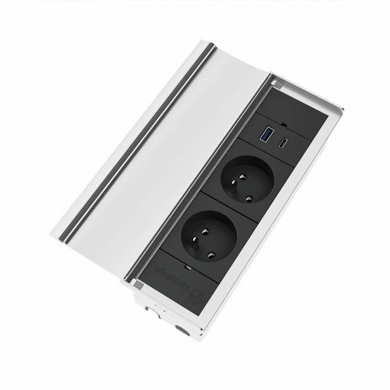 Bloc 2 prises + 1 USB-A + 1 USB-C VersaLid USB A/C avec couvercle blanc mat