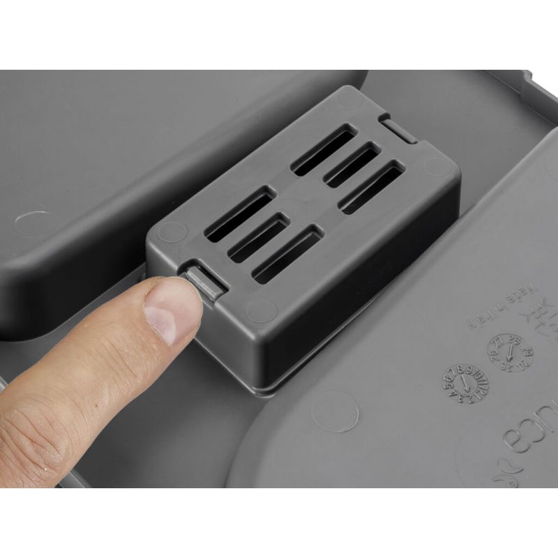 Ce modèle comprend un couvercle avec un espace pour insérer une pastille anti-odeur, qui aide à maintenir une sensation de fraîcheur dans le tiroir des bacs. Sa formule contribue à une atmosphère plus agréable, en ajoutant un parfum subtil à chaque fois que le tiroir est ouvert.