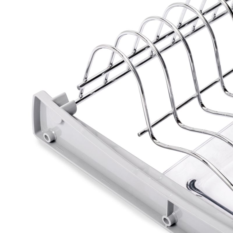 Fabriqué en acier chromé résistant à l’humidité et à la corrosion, l’égouttoir est accompagné de fixations en plastique gris robustes et d’un bac récupérateur facile à retirer et à nettoyer. Livré avec tous les accessoires nécessaires, ce modèle s’intègre parfaitement dans une cuisine moderne, fonctionnelle et bien organisée.