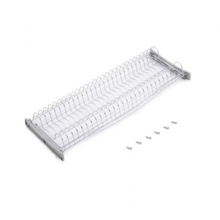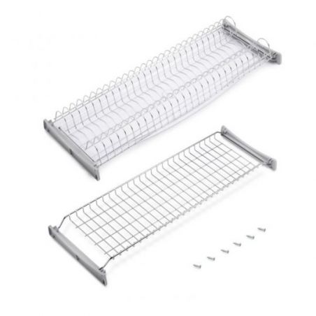 Elle se distingue par sa grande capacité de stockage et par sa grande facilité de montage, il suffit de visser les ancrages dans le meuble de cuisine et de placer les plateaux. Fabriqué en acier résistant à la rouille, avec des ancrages en plastique gris à l'unité et un bac de récupération en plastique.