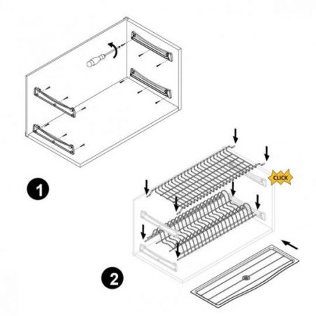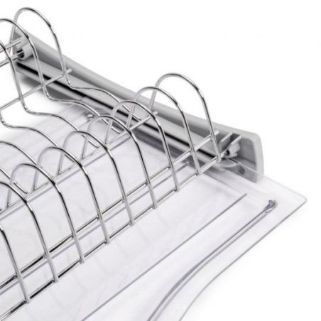 Adapté aux cuisines familiales, ce modèle propose deux niveaux distincts pour organiser votre vaisselle, ainsi qu’un bac récupérateur d’eau pour éviter tout dégât dans votre meuble. Facile à installer, il suffit de visser les supports fournis puis de poser les grilles pour qu’il soit prêt à l’emploi.