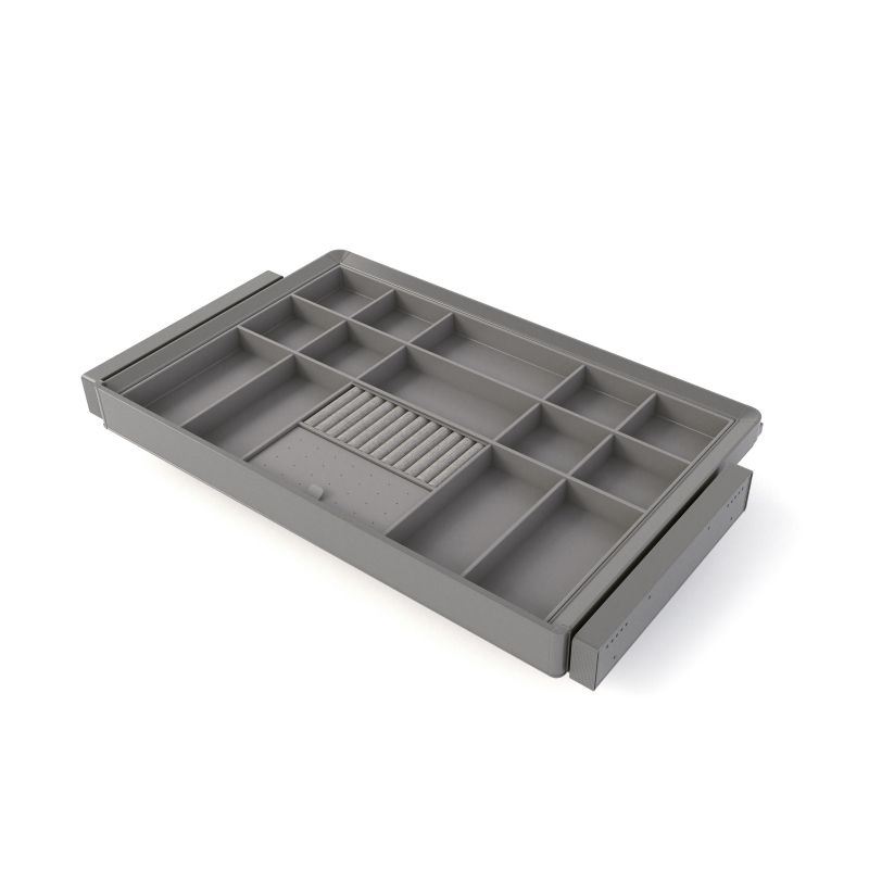 Organisateur de tiroir sur cadre coulissant Quartz pour meuble de 800mm, Titane