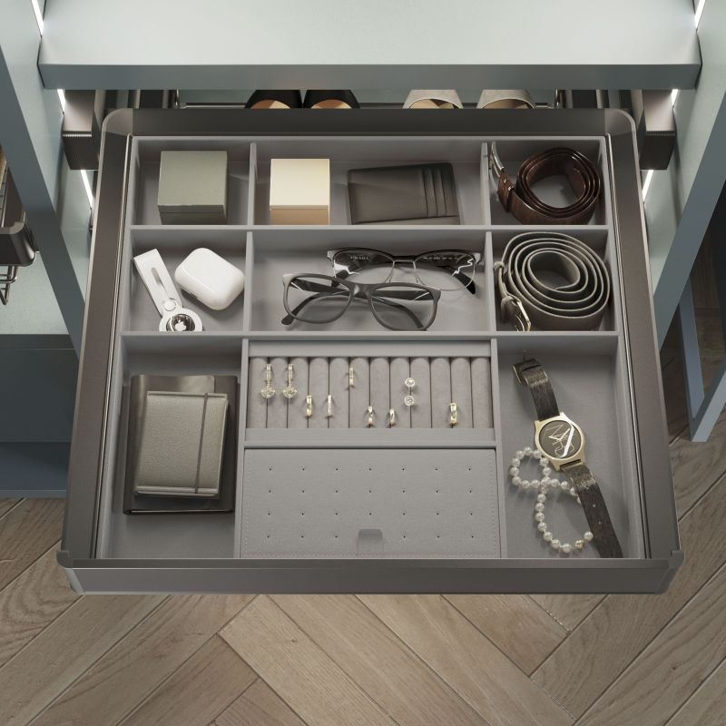 Compatible avec l’ensemble de la gamme Quartz, ce tiroir offre une solution modulable, élégante et durable pour tout dressing haut de gamme.