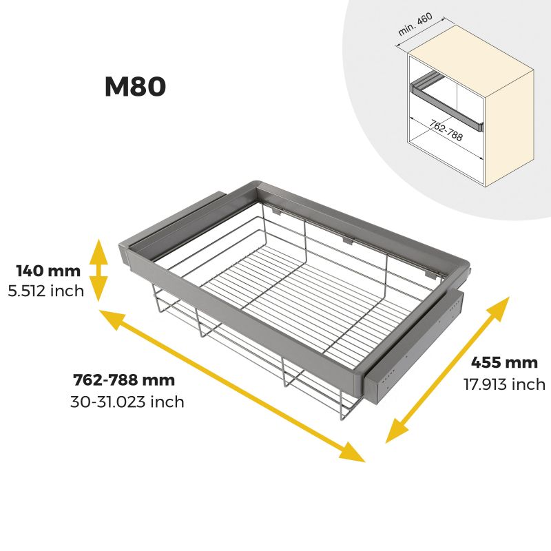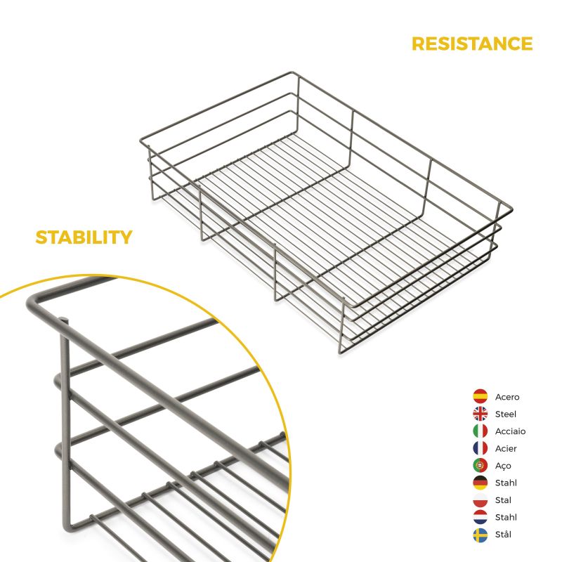 Tiroir en fil métallique sur cadre coulissant Quartz pour meuble de 800mm, Titane
