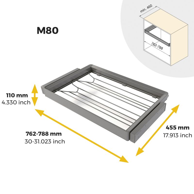 Tiroir à chaussures sur cadre coulissant Quartz pour meuble de 800mm, Titane