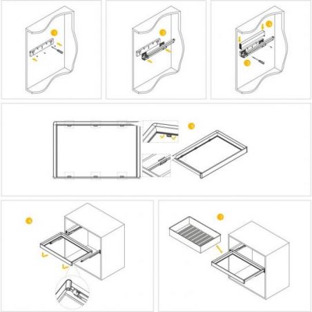 Le cadre coulissant Quartz est fabriqué en aluminium de qualité supérieure, avec des coulisses à extraction totale et un mécanisme de fermeture en douceur. Il garantit une manipulation fluide, silencieuse et fiable au quotidien. Avec une capacité de charge allant jusqu’à 30 kg, ce cadre assure stabilité et longévité. Grâce à ses glissières réglables (jusqu’à 13 mm par côté) et aux entretoises incluses, il s’adapte précisément à votre meuble, à partir d’une profondeur minimale de 460 mm. L’installation est rapide et sans complication : il suffit de visser le cadre latéralement dans le caisson.