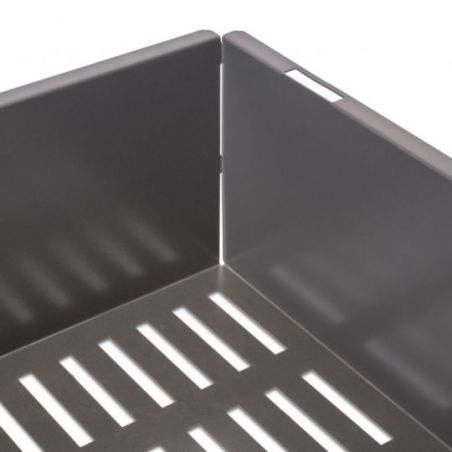 Le tiroir métallique offre une solution fiable et durable pour stocker vêtements, accessoires ou linge plié. Fabriqué en acier avec finition titane, il allie résistance et élégance. Ses parois ajourées assurent une bonne aération de son contenu, et son montage est simplifié par un système de clips à emboîtement rapide sur le cadre, sans vis ni outils. Il est entièrement compatible avec le système Quartz, vous permettant d’ajouter facilement d’autres accessoires coordonnés selon vos besoins d’organisation.