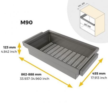 Panier métallique sur cadre coulissant Quartz pour meuble de 900mm, Titane