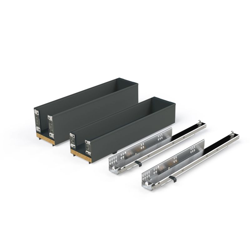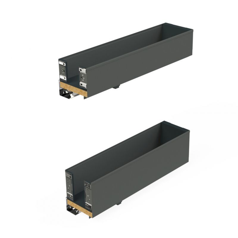 L'ensemble comprend les côtés complets (hauteur 122 mm et 88 mm) déjà assemblés, ainsi que les coulisses Silver-L à sortie totale et les plaques de recouvrement pour couvrir les réglages, garantissant ainsi une finition impeccable.