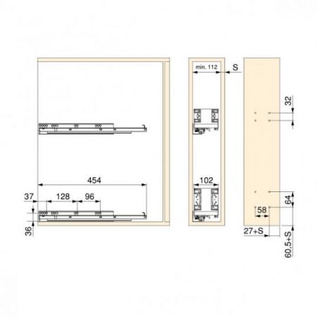 Il offre un réglage de la façade de ±2 mm en vertical et ±1,5 mm en horizontal, ainsi qu'un réglage en hauteur intégré dans les coulisses (4,5 mm), ce qui facilite un ajustement précis pour une installation parfaite. Il est conçu pour un montage sur le côté gauche et est compatible avec les meubles dotés de panneaux de 16, 18 et 19 mm, ce qui le rend polyvalent et adaptable à différentes configurations.