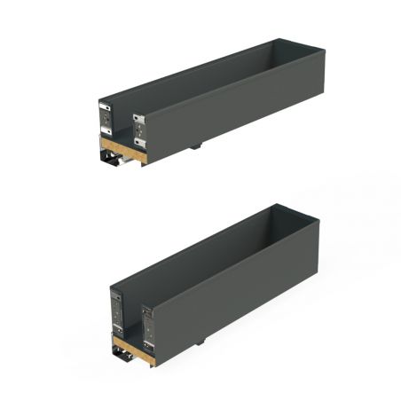 L'ensemble comprend les côtés complets (hauteur 122 mm et 88 mm) déjà assemblés, ainsi que les coulisses Silver-L à sortie totale et les plaques de recouvrement pour couvrir les réglables, garantissant ainsi une finition impeccable.